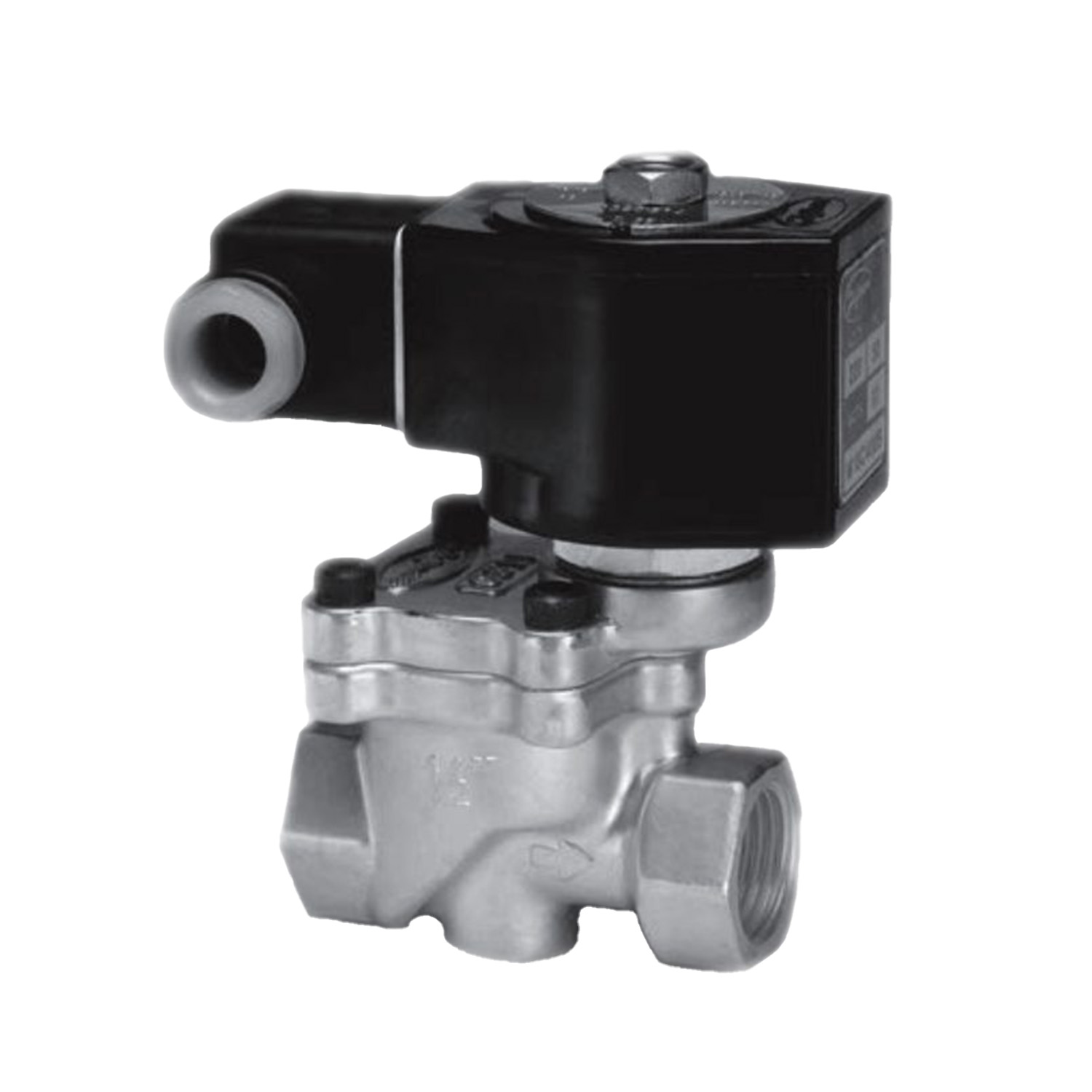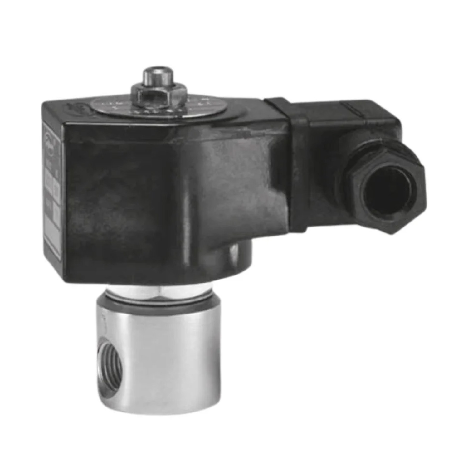 | Material | Cuerpo compacto de latón forjado. Conexiones roscadas BSP o NPT. Asiento de acrilo-nitrilo para fluidos neutros hasta 80 °C. Asientos de neoprene, etileno-propileno y FKM para otros usos. Minibobinas capsuladas. Conexión ISO 4400 / EN 175301-803 (Ex DIN 43650) forma B. Protección IP65 y NEMA4. |