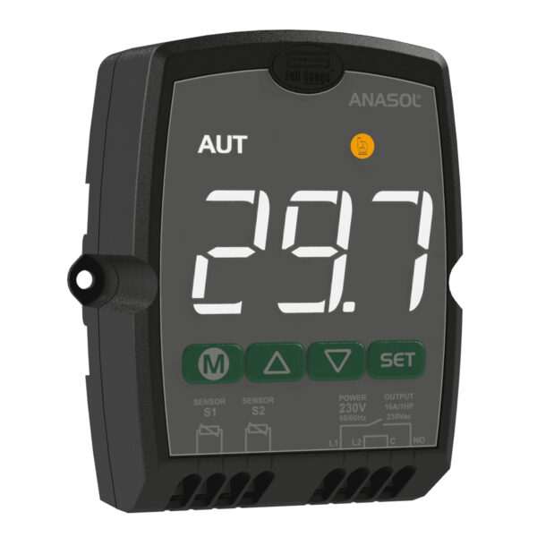 La versión económica del termostato diferencial para calefacción solar llega completamente renovado. El nuevo Anasol digital es de fácil configuración y cuenta con el mayor display del mercado, facilitando la visualización de la temperatura y alarmas, además de indicar el estatus de funcionamiento.