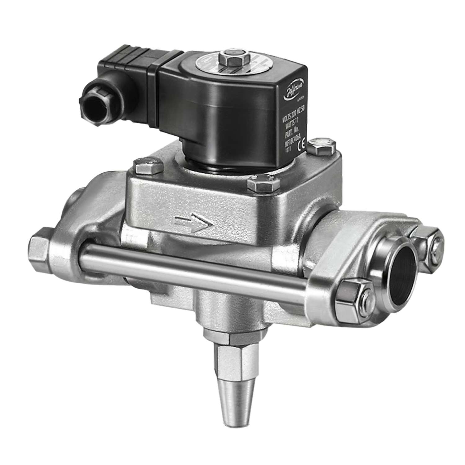 | Material | Cuerpo de fundición. Bridas para soldar forjadas en acero. Diafragmas y asientos de PTFE. Bobinas capsuladas con conexiones DIN 43650. IP65. |